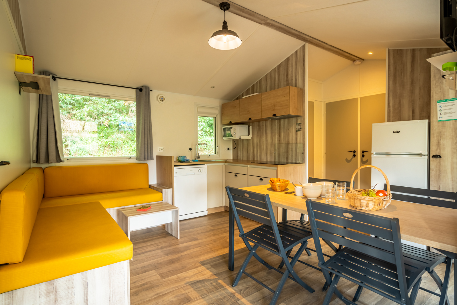 Holidaymakers can enjoy a panoramic swimming pool, a children's playground, and a multi-sports court, or take part in water sports on the Dordogne River, such as canoeing, kayaking, or fishing. The 4-star campsite also offers a bar, restaurant, and small grocery store for a carefree stay.